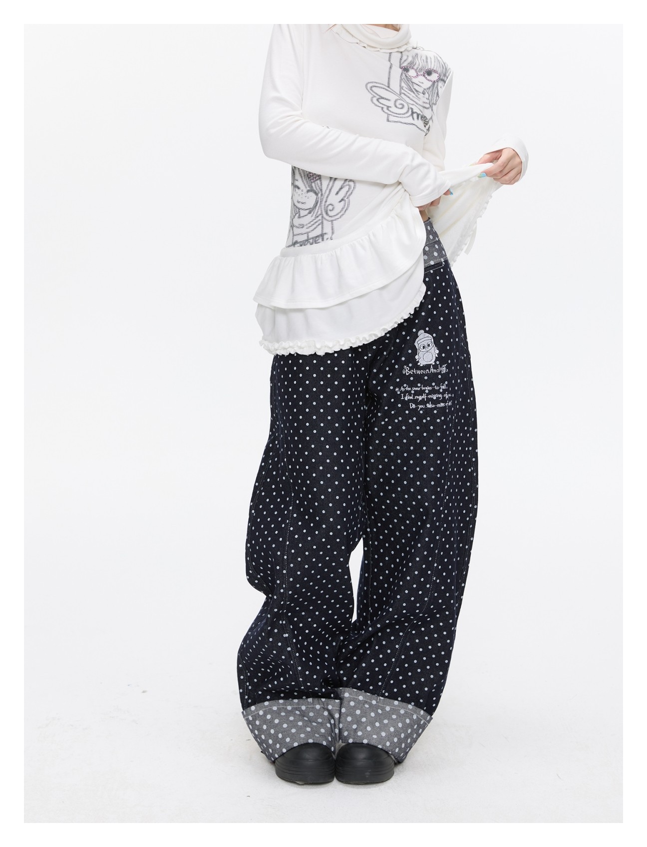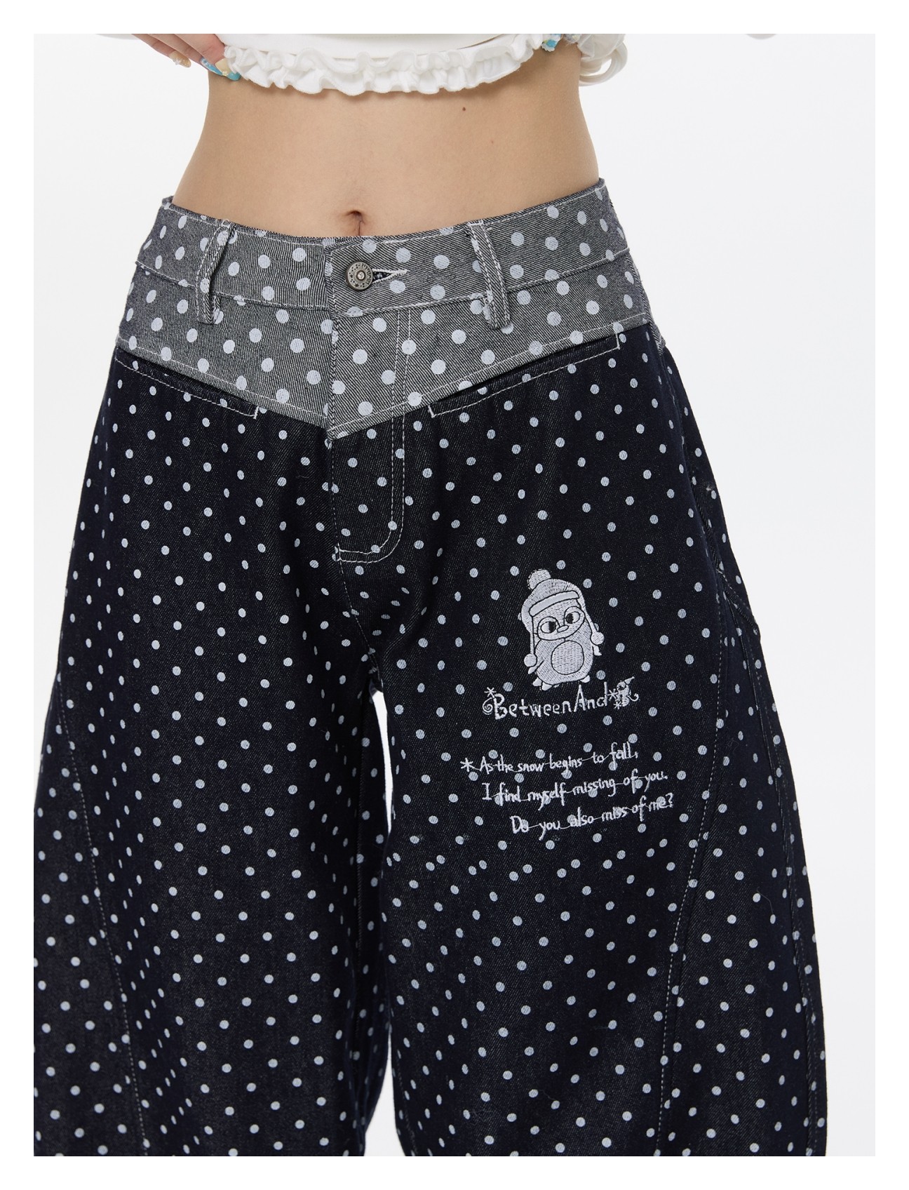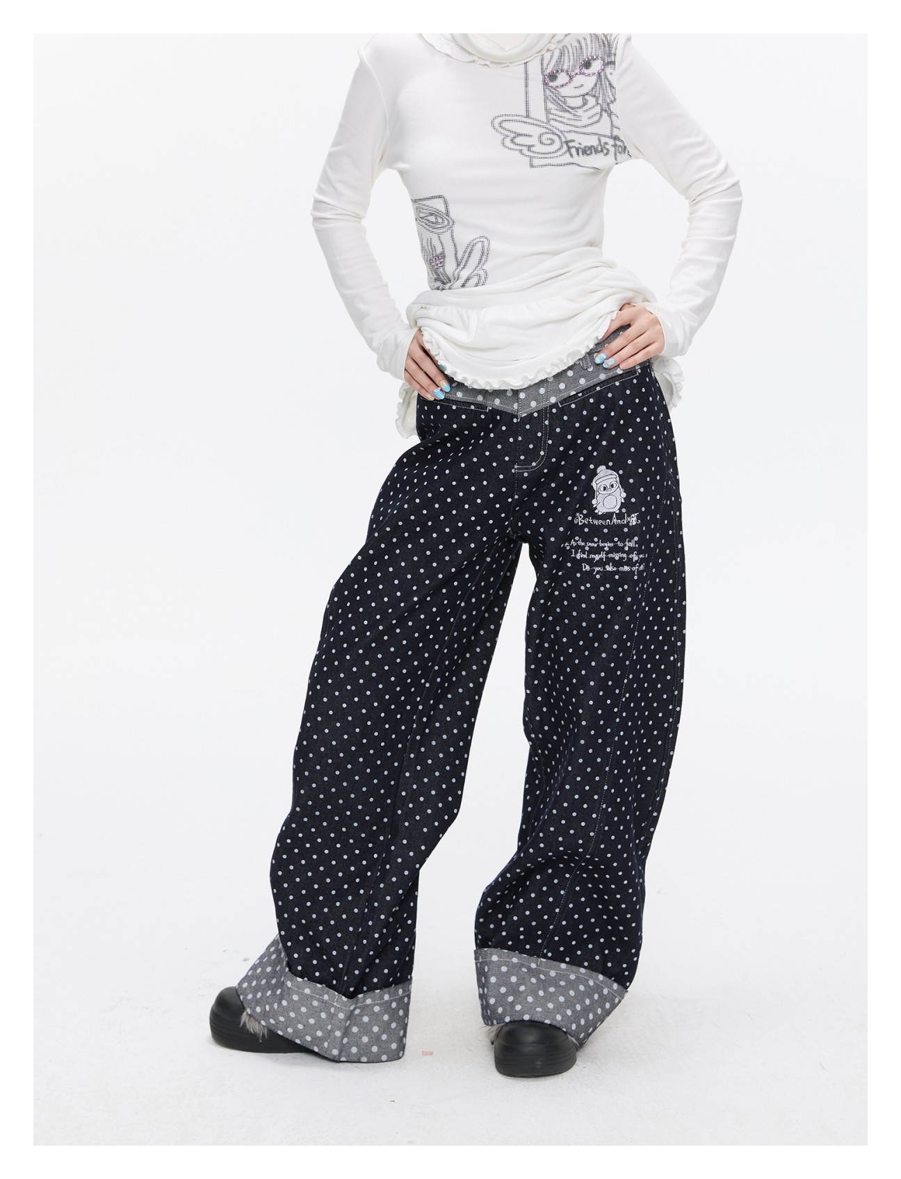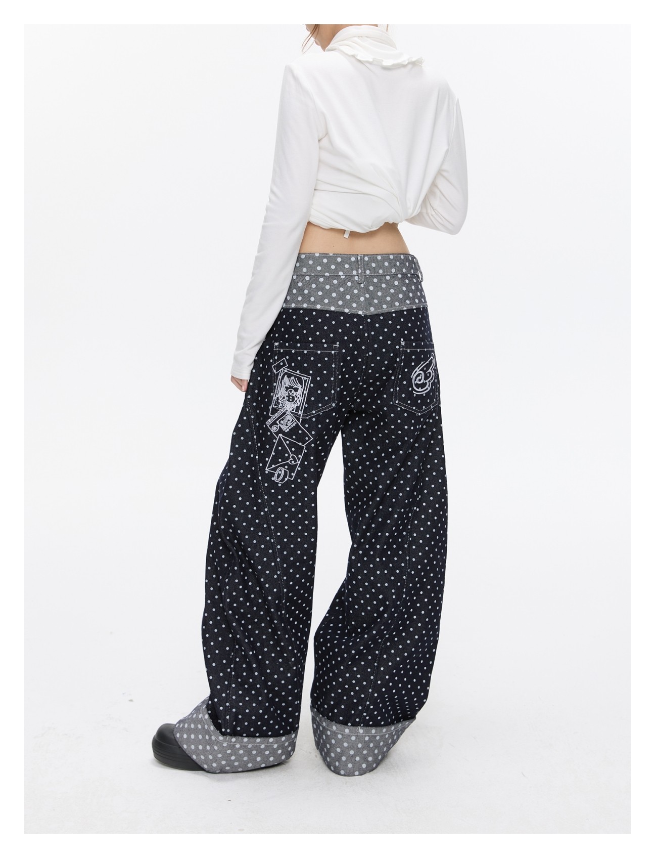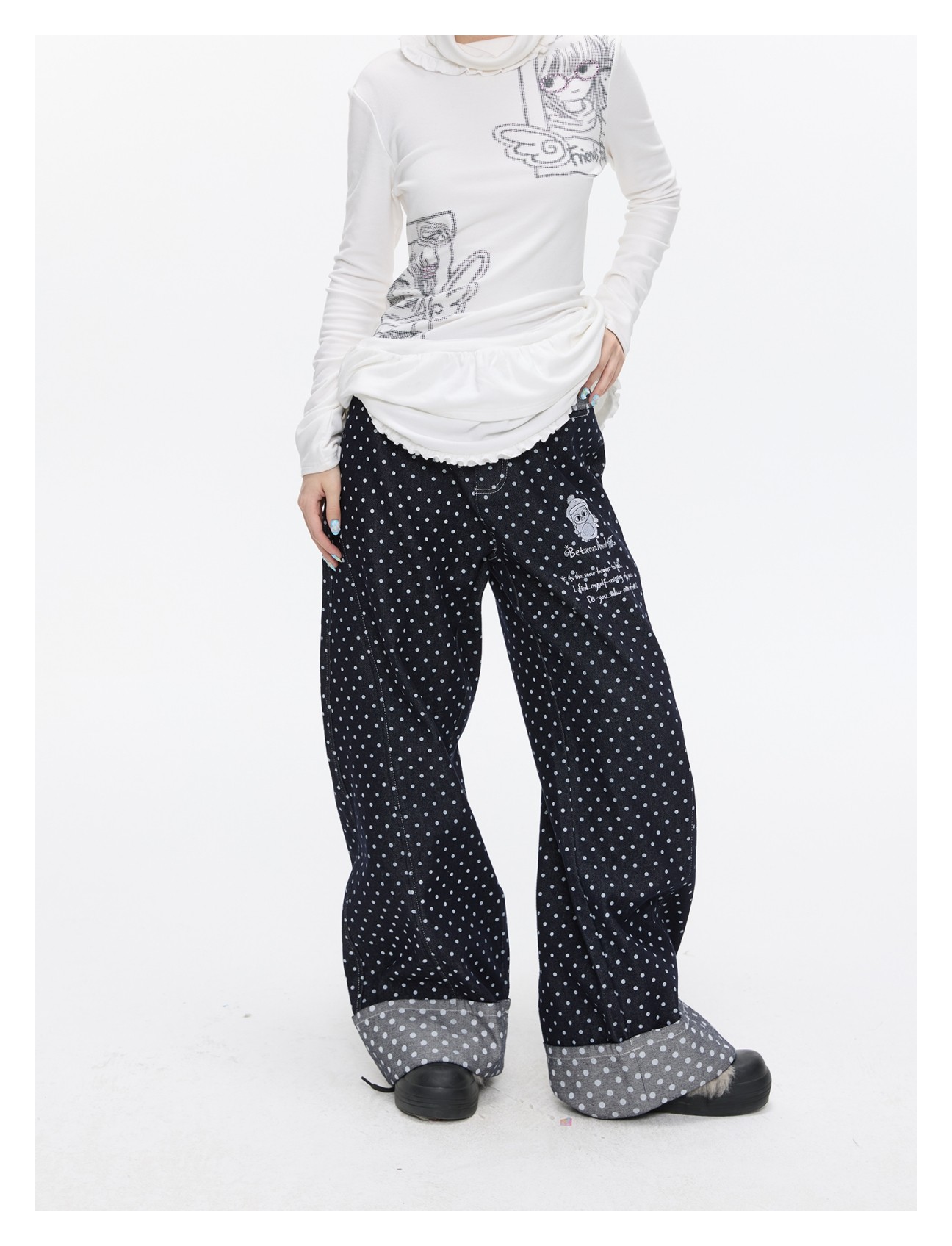 ペンギンのディテールが施された、オリジナルの牛革ポルカドットパンツ ルックブック