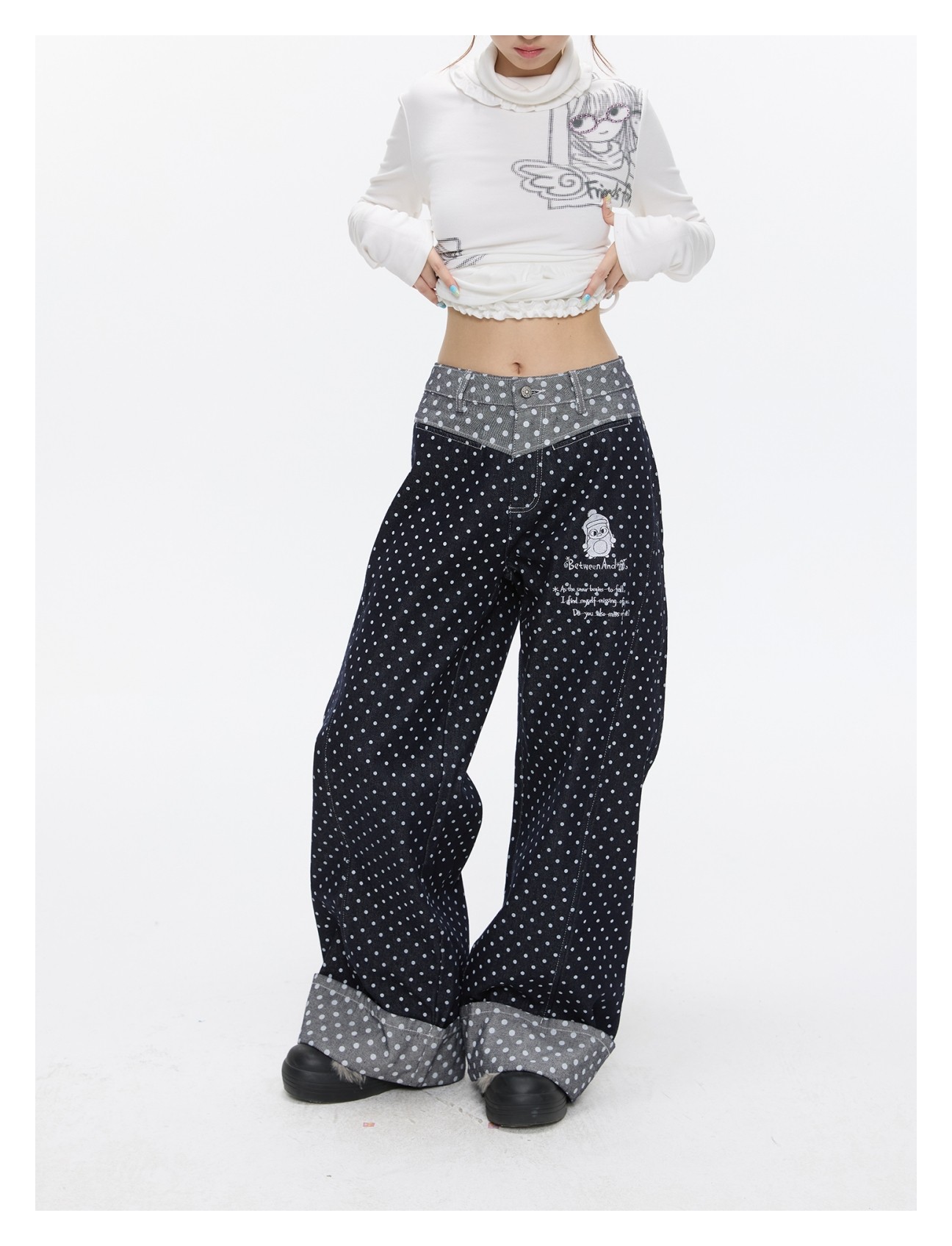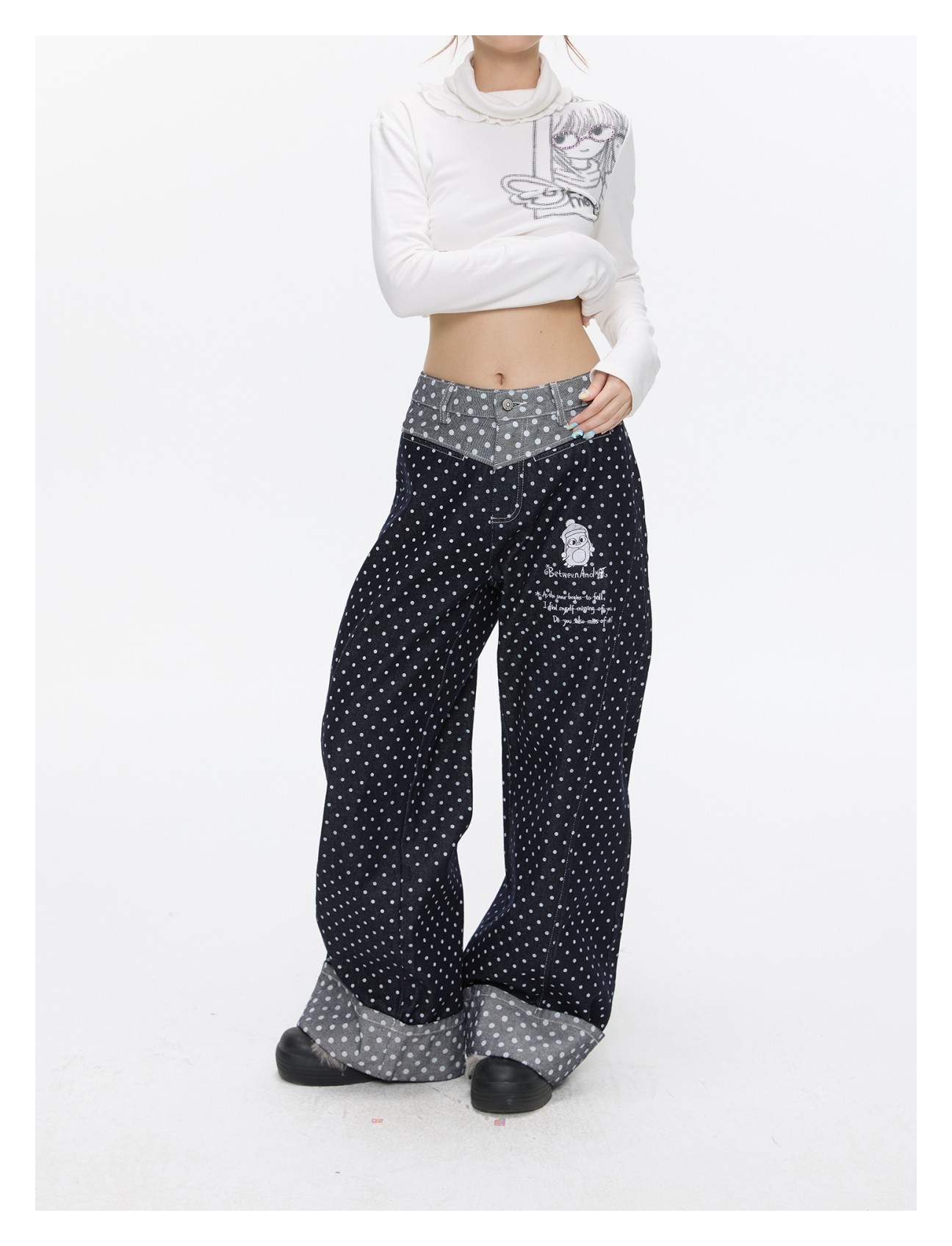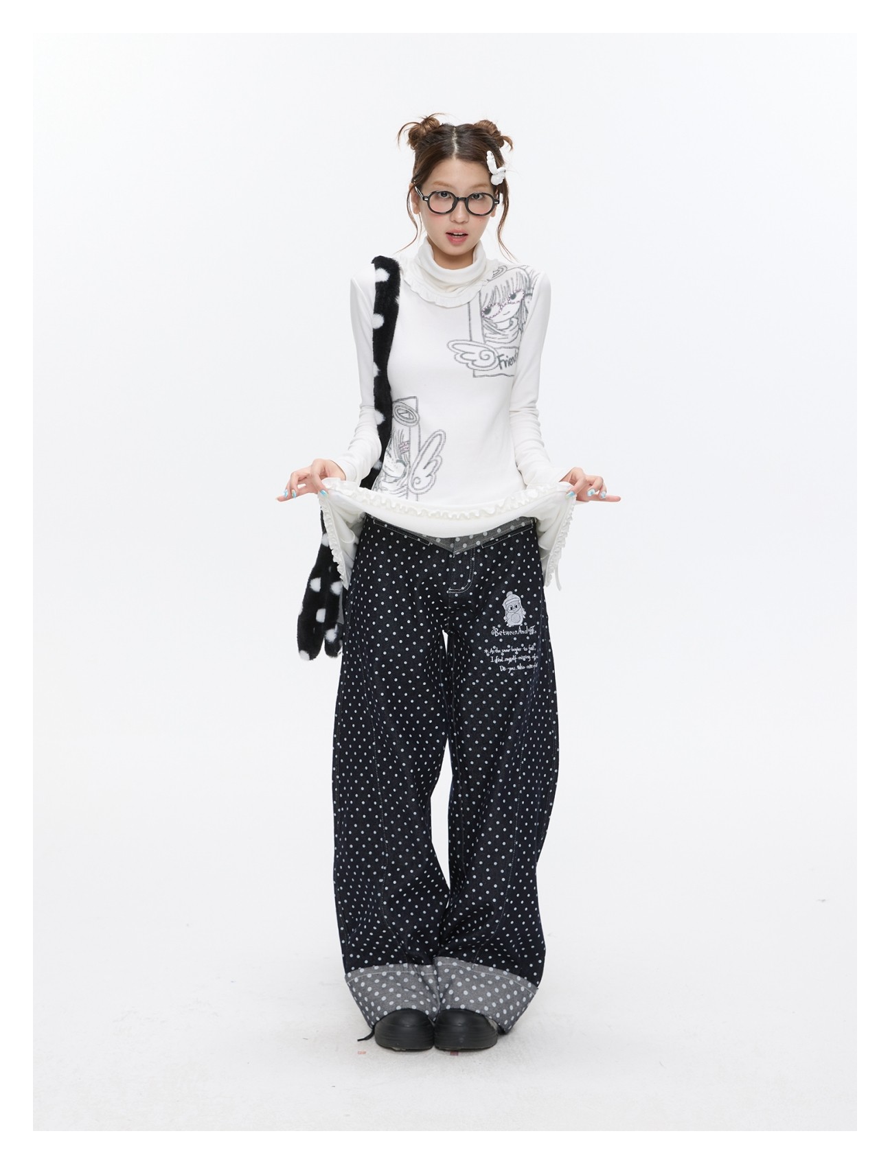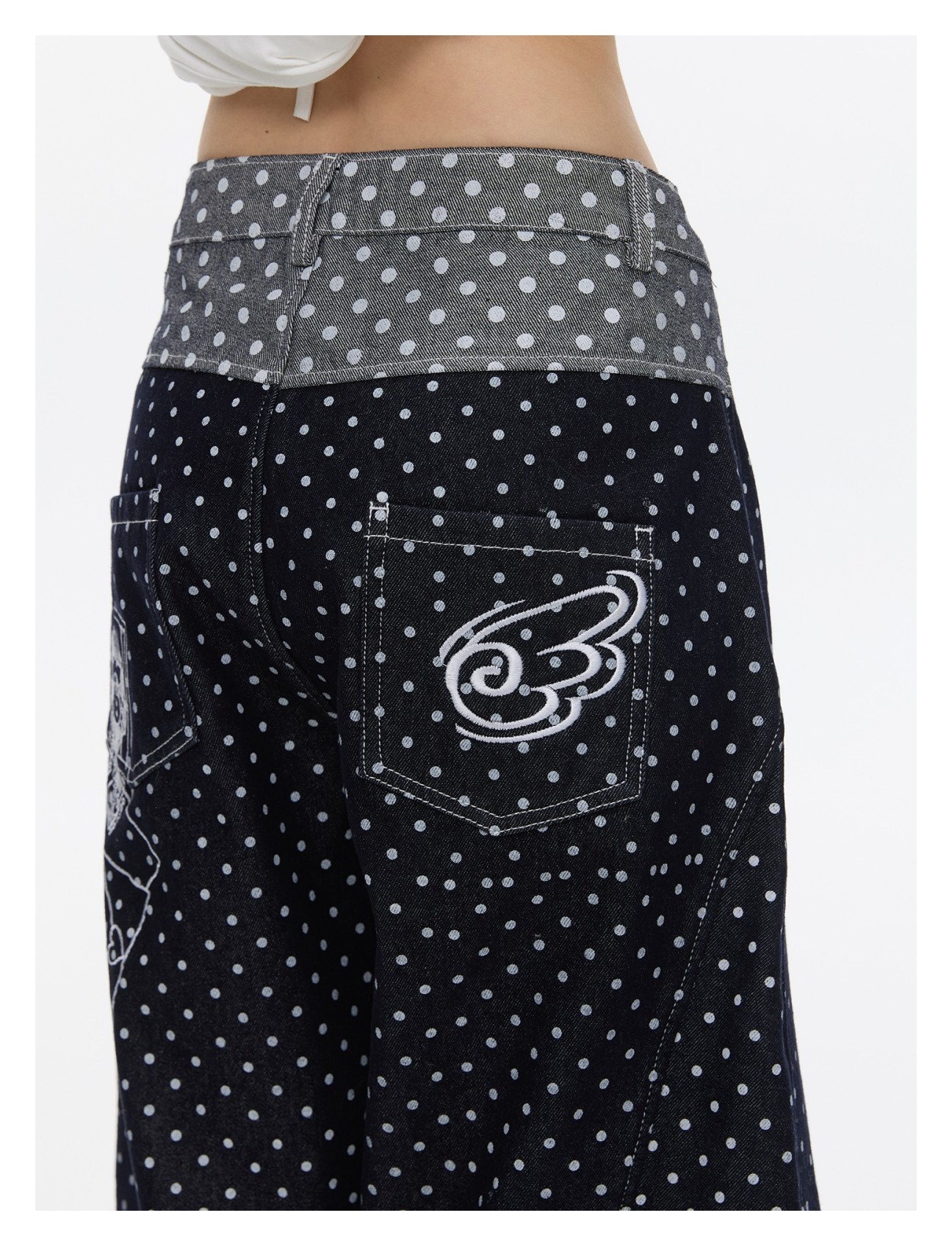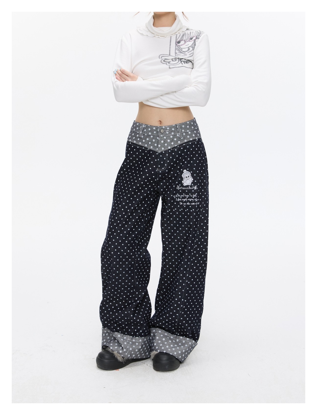 ペンギンのディテールが施された、オリジナルの牛革ポルカドットパンツ ルックブック