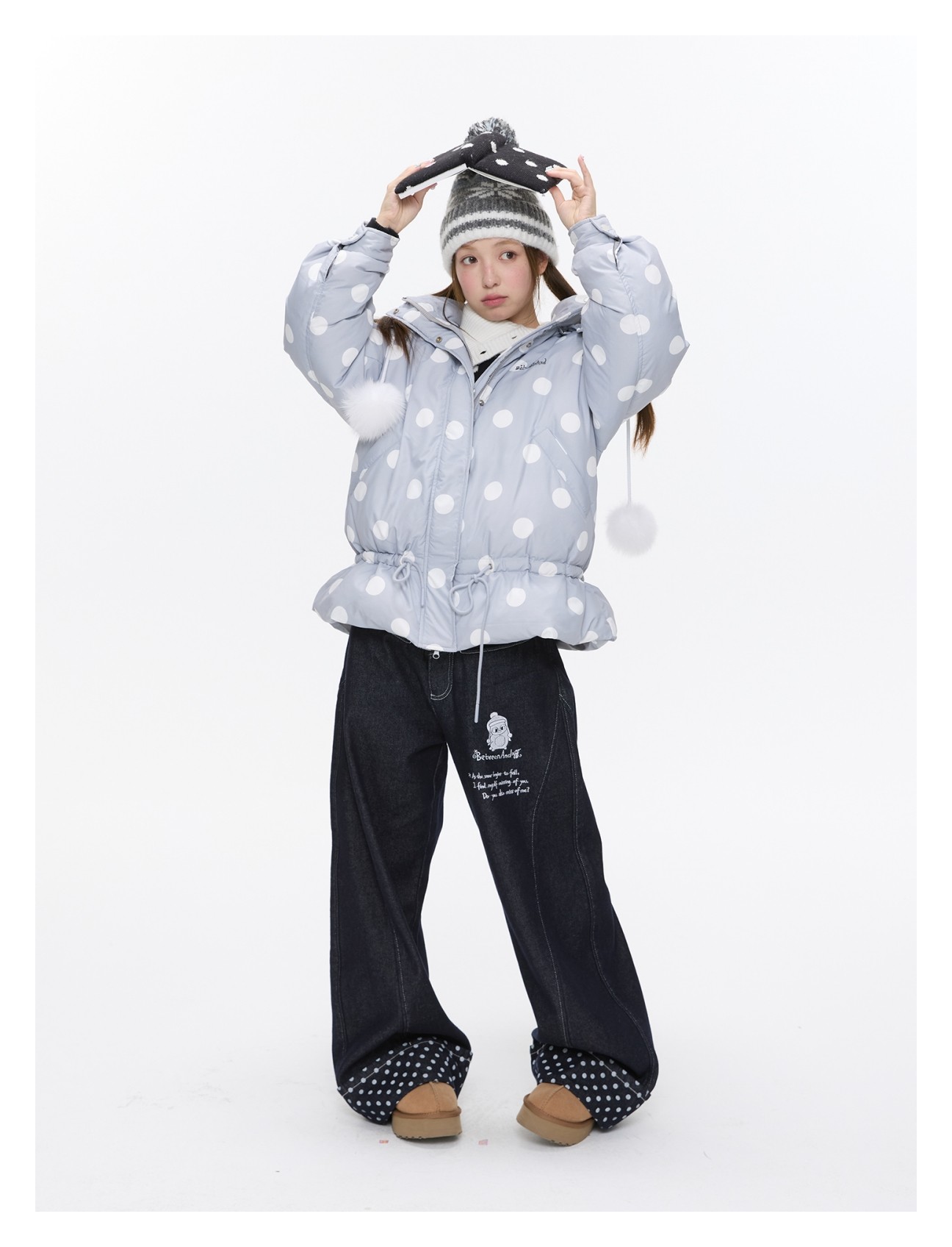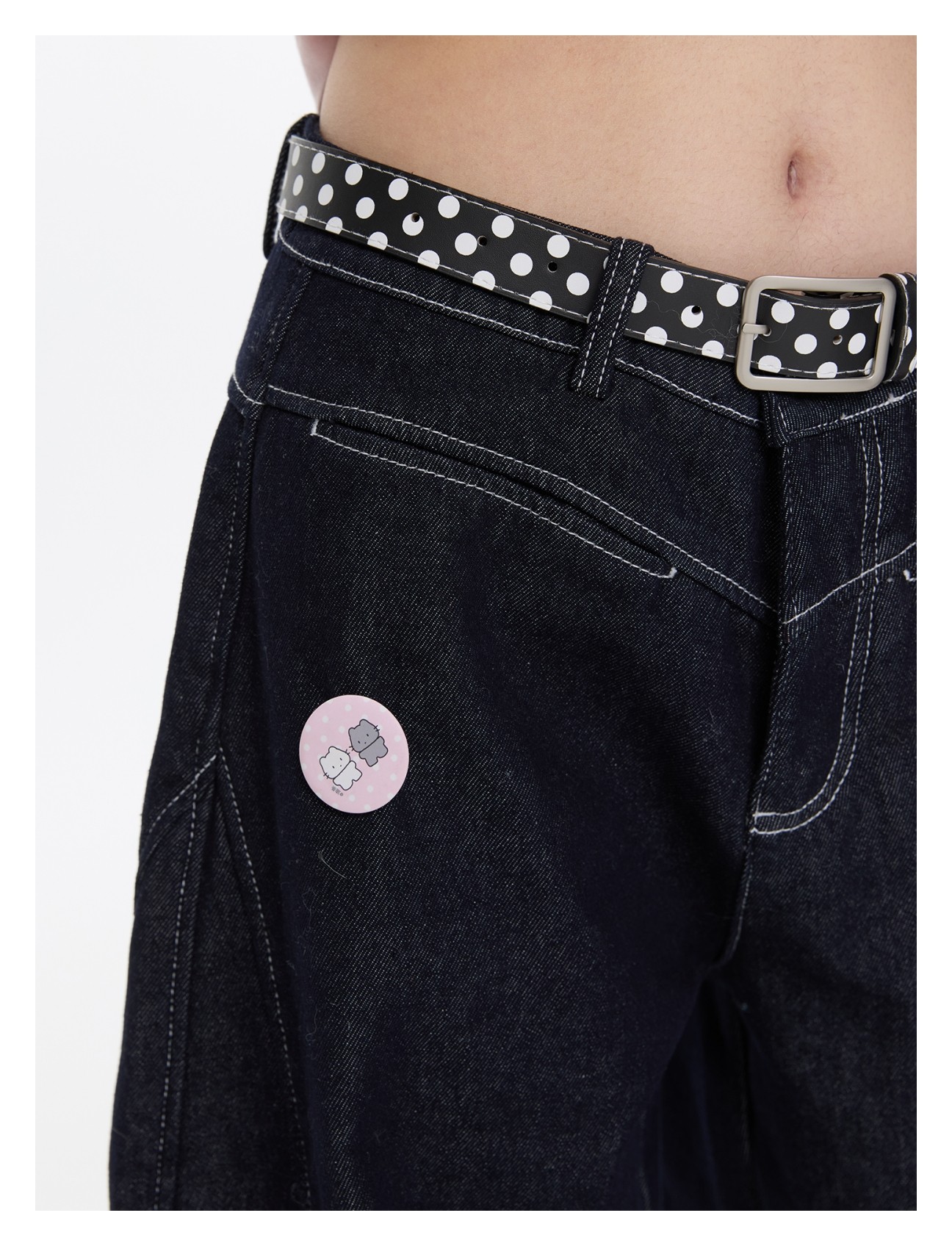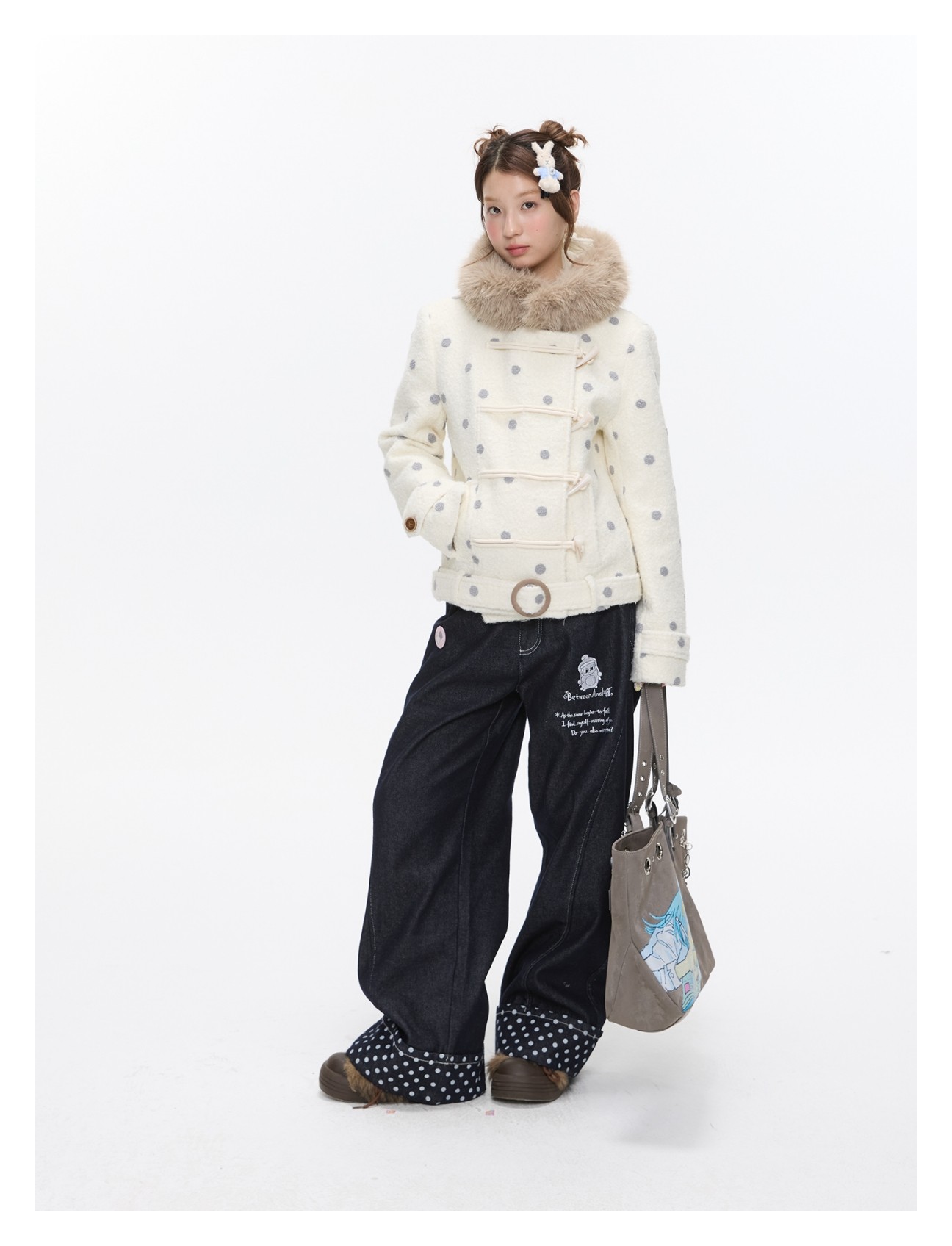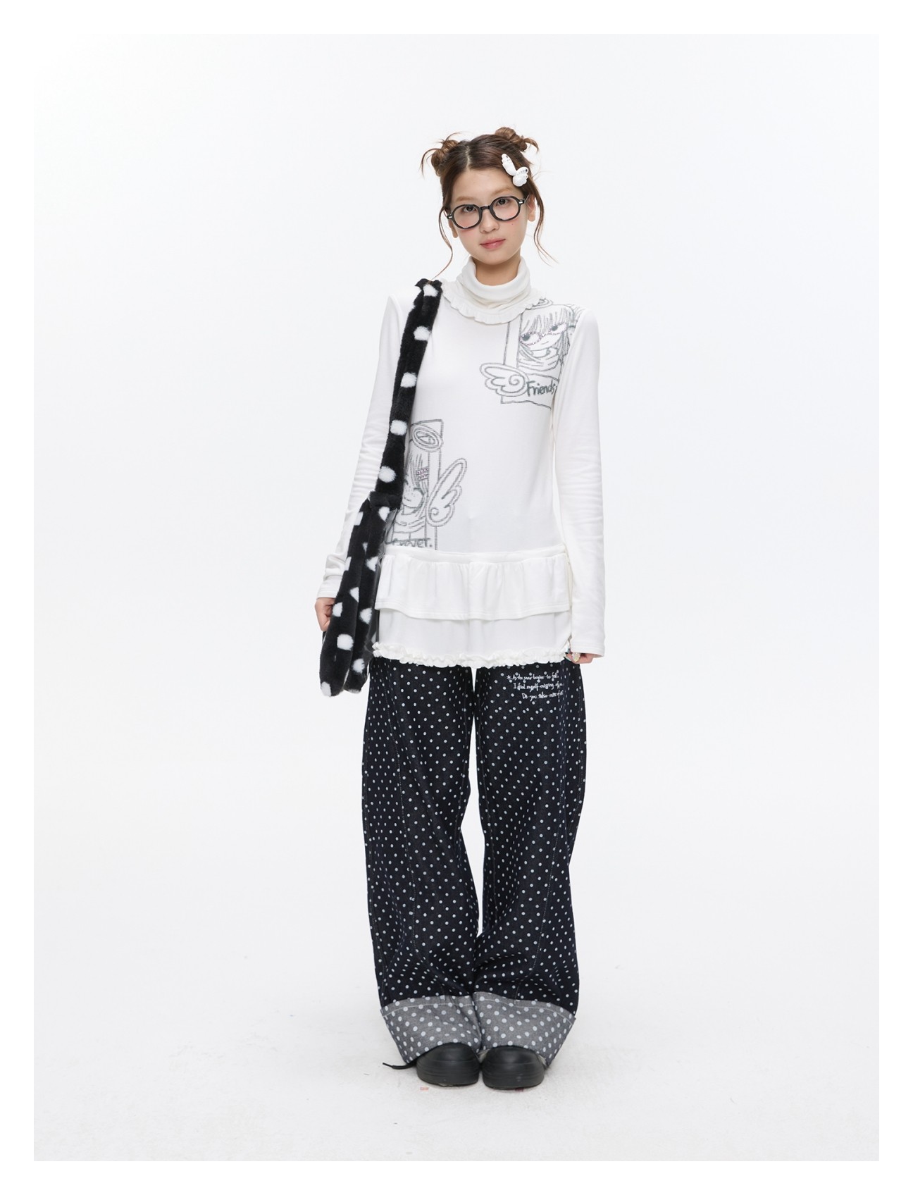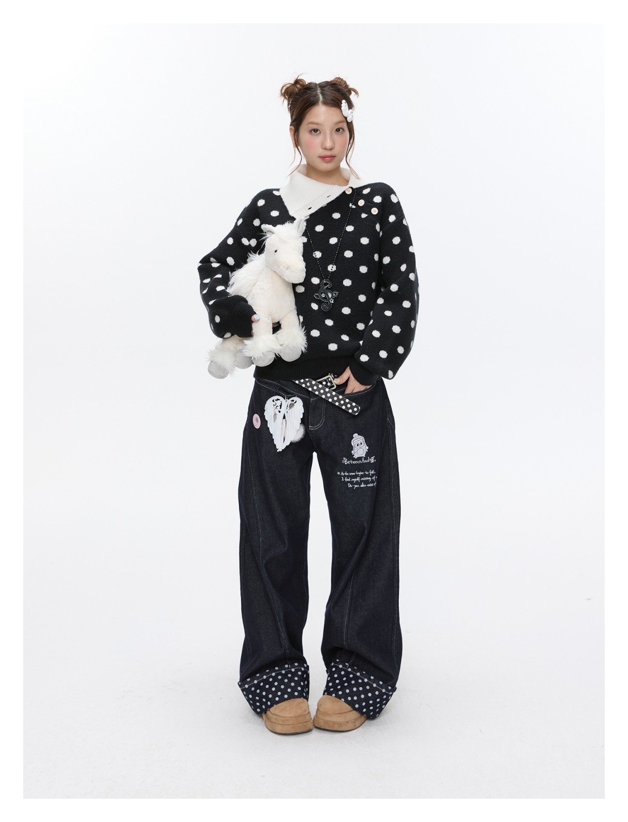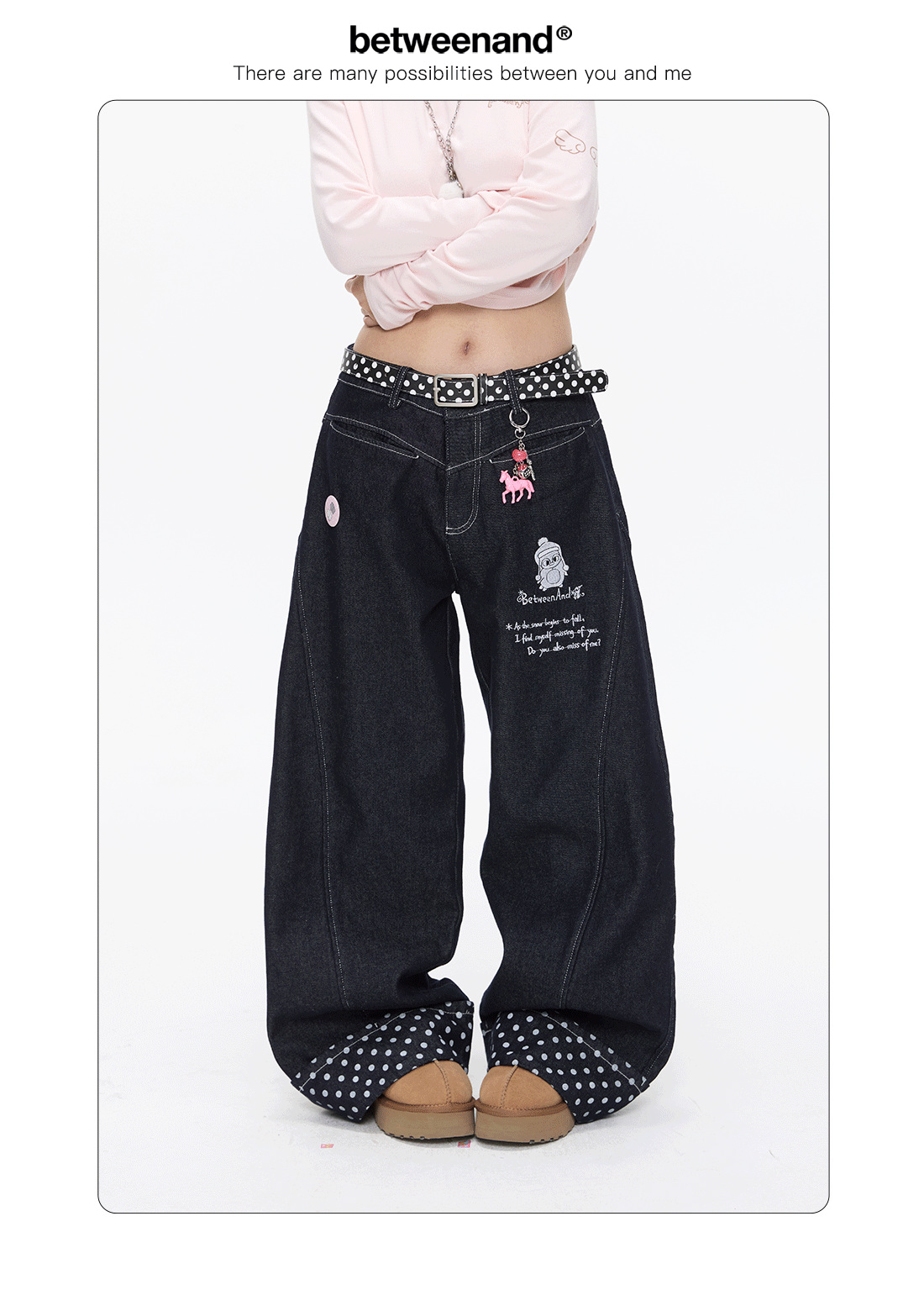 ペンギンのディテールが施された、オリジナルの牛革ポルカドットパンツ ルックブック