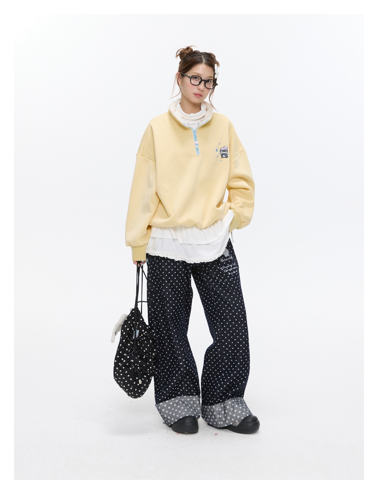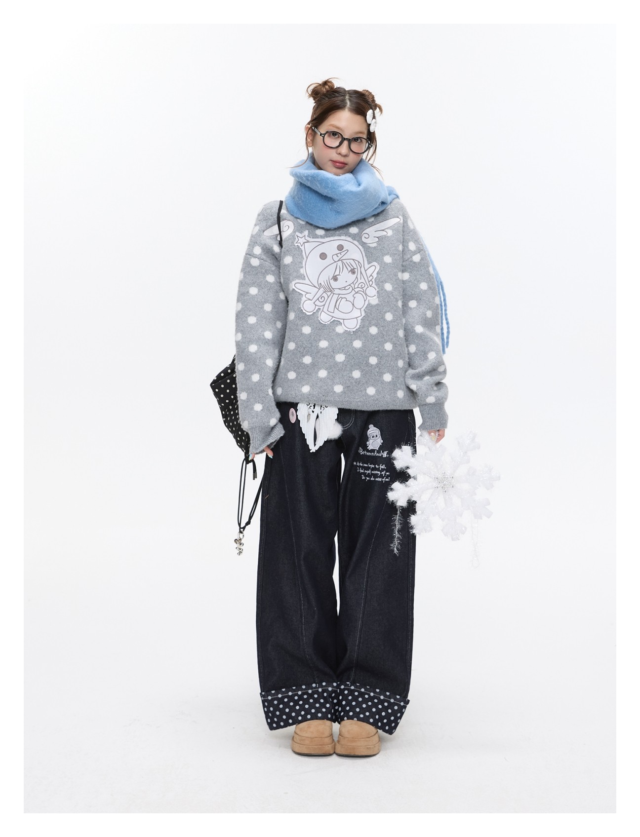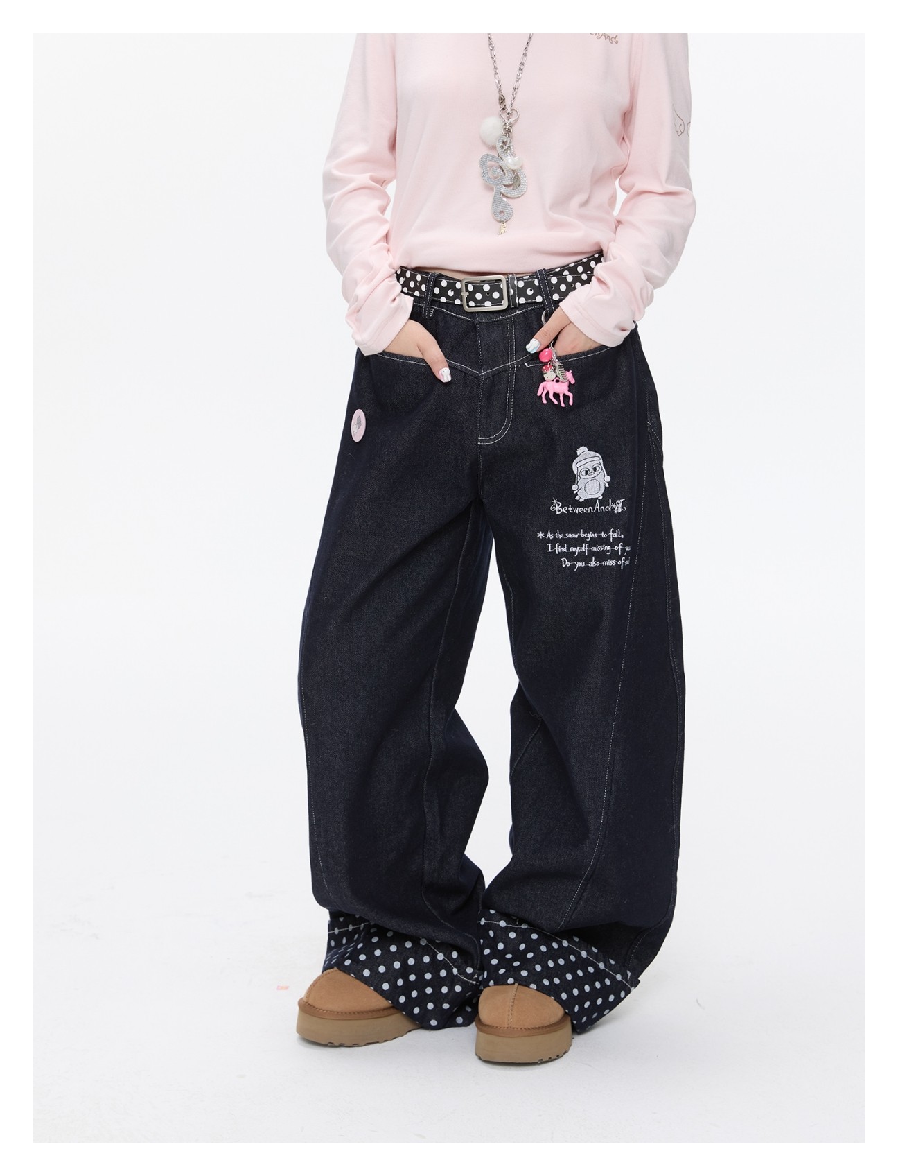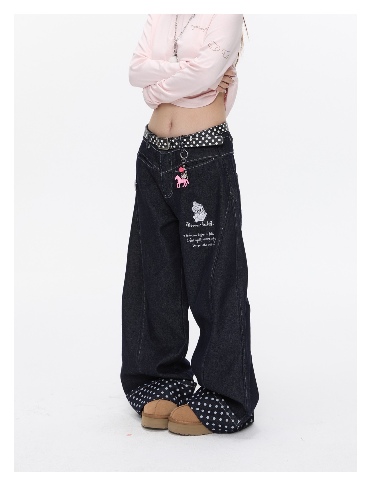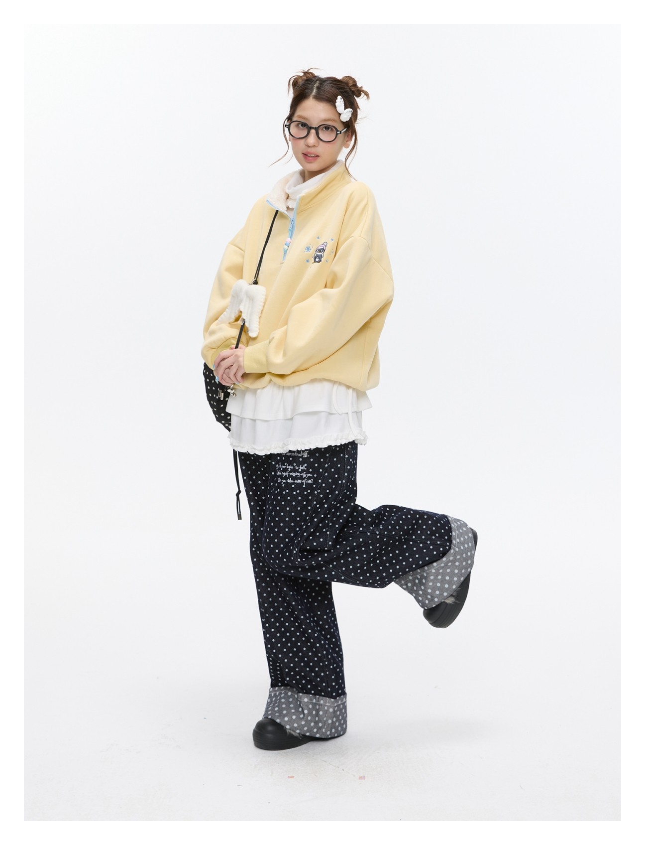 ペンギンのディテールが施された、オリジナルの牛革ポルカドットパンツ ルックブック
