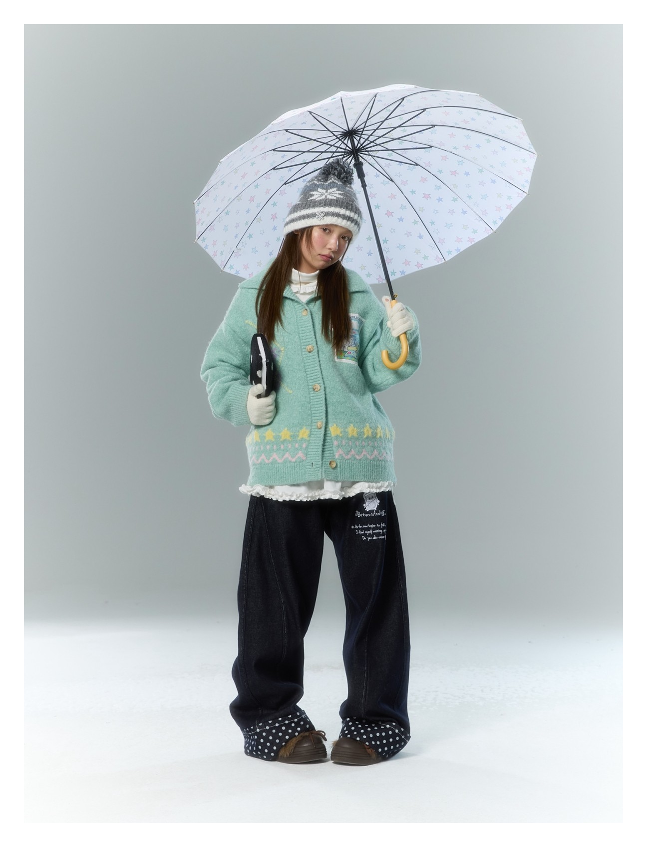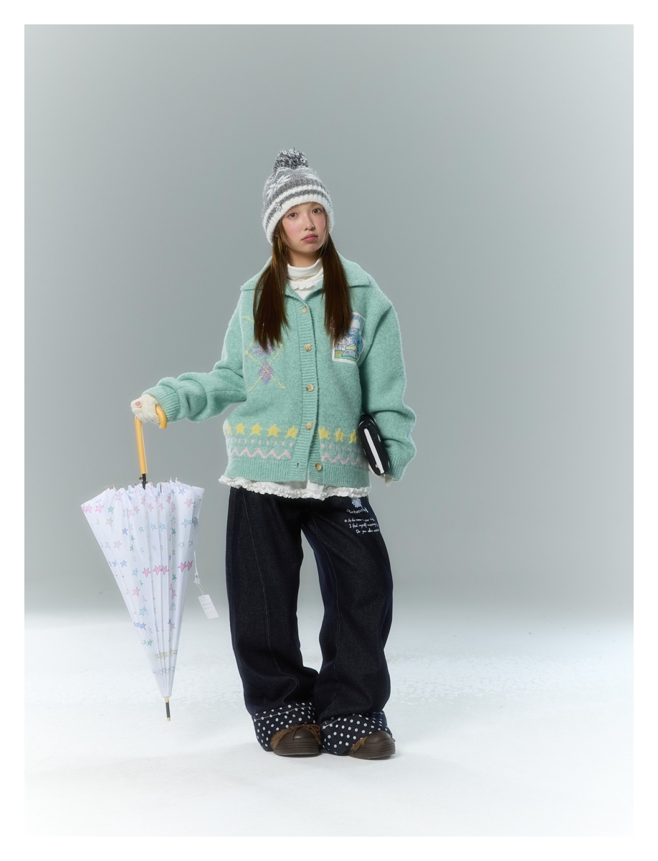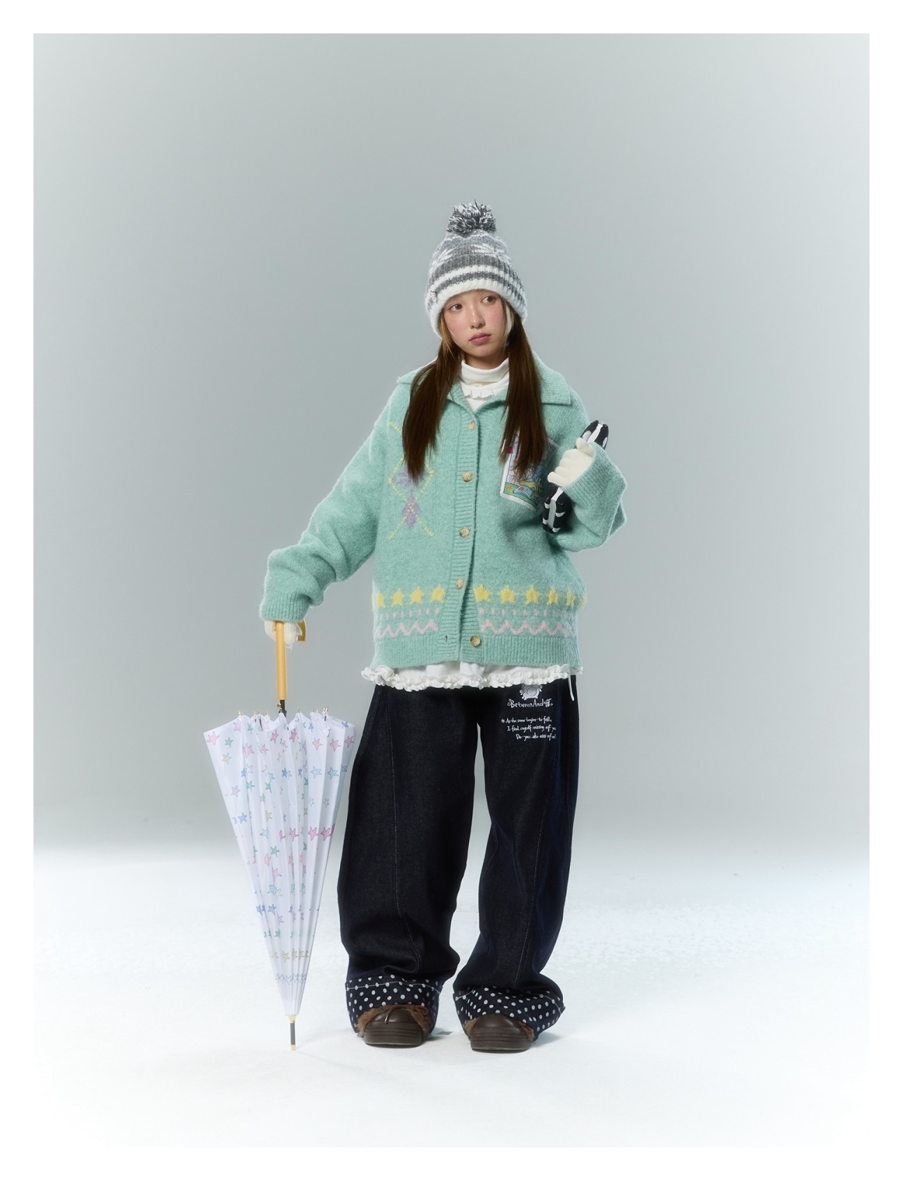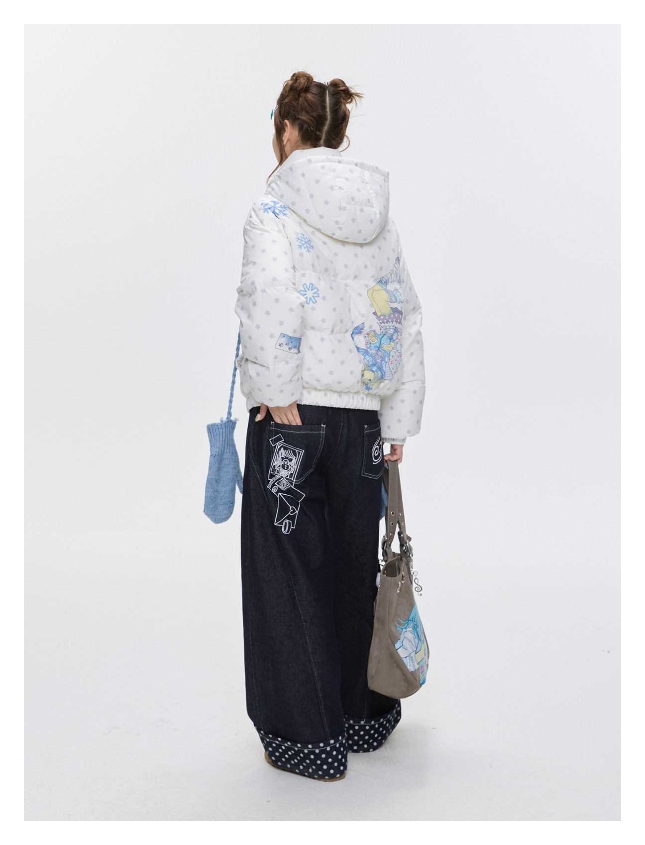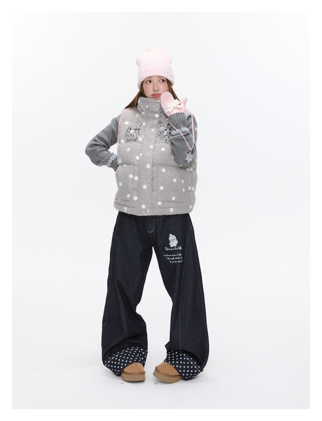 ペンギンのディテールが施された、オリジナルの牛革ポルカドットパンツ ルックブック