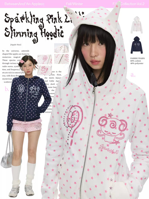White star polka-dot hooded down jacket