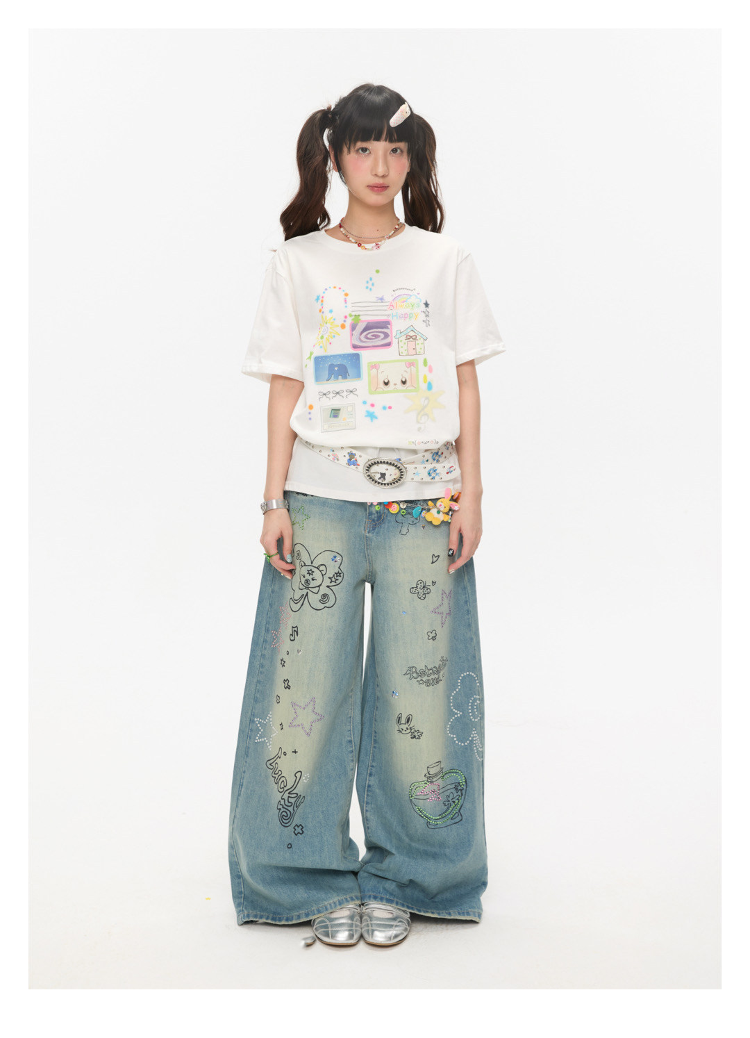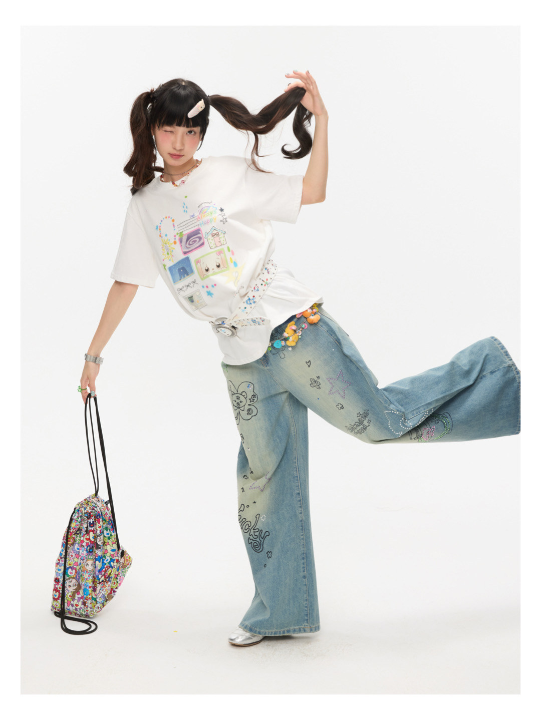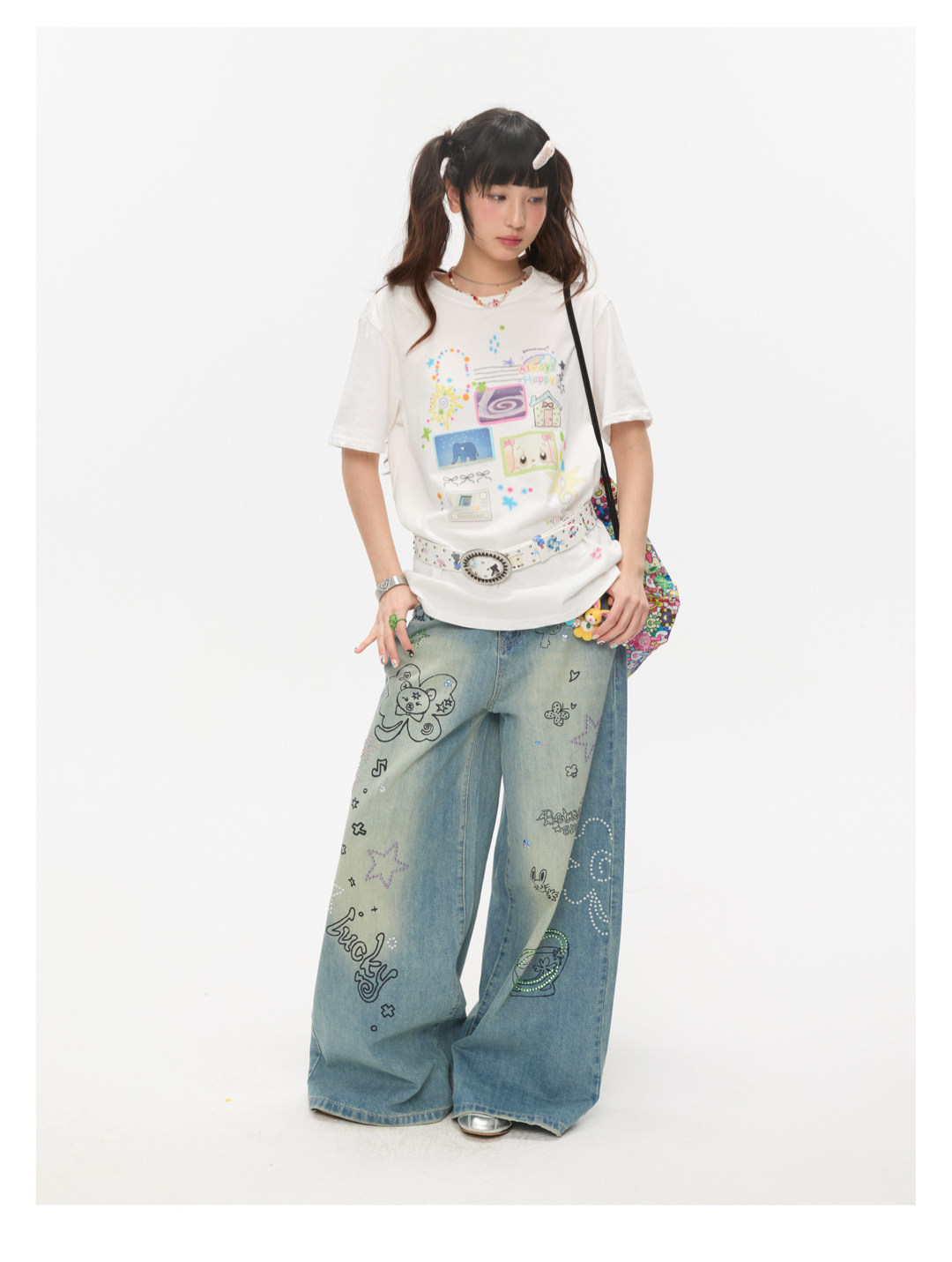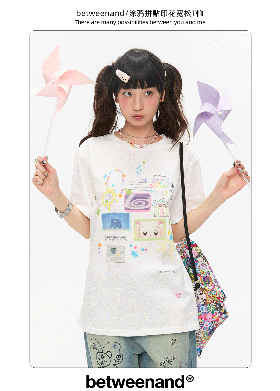 Graffiti collage print loose t-shirt Lookbook