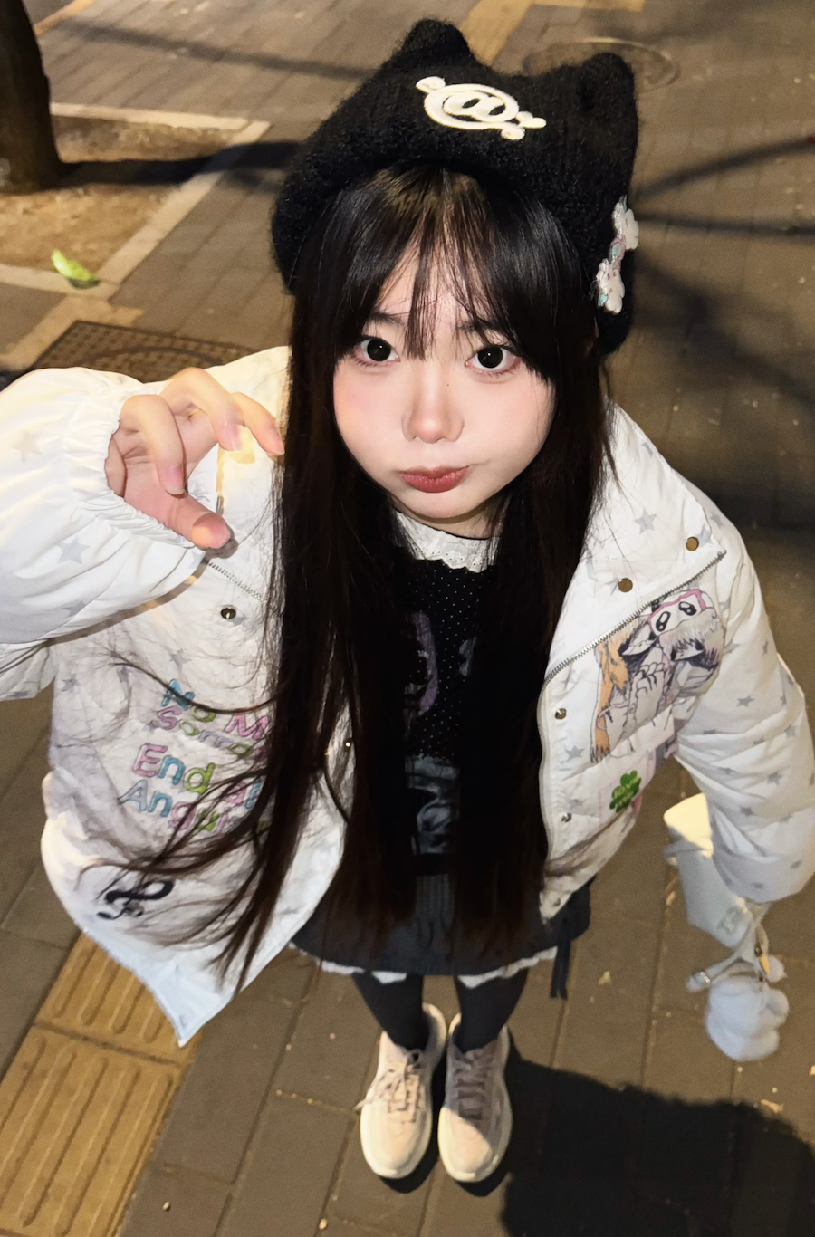 White star print down jacket with 90% duck filling and puffer design Lookbook