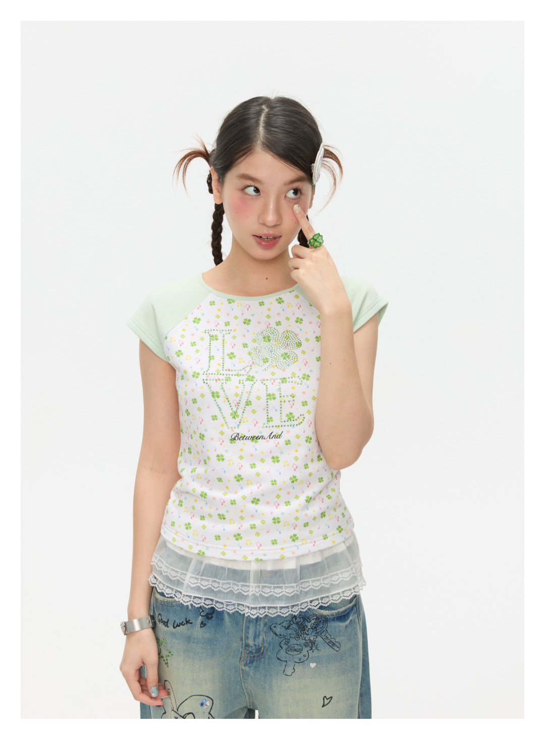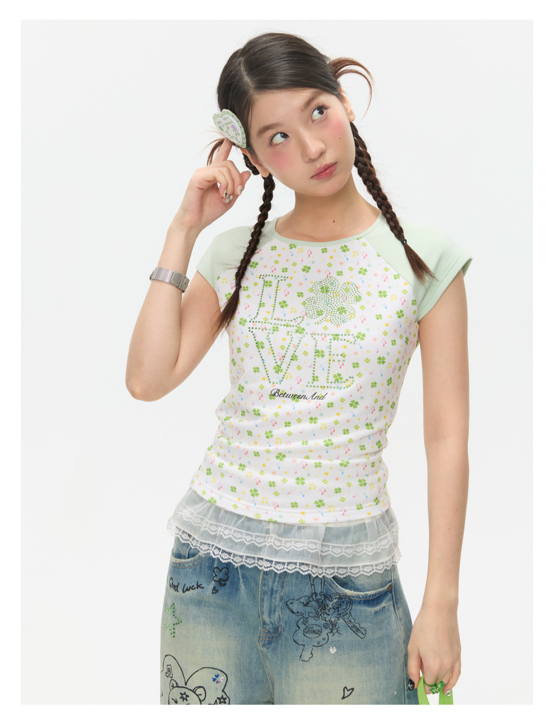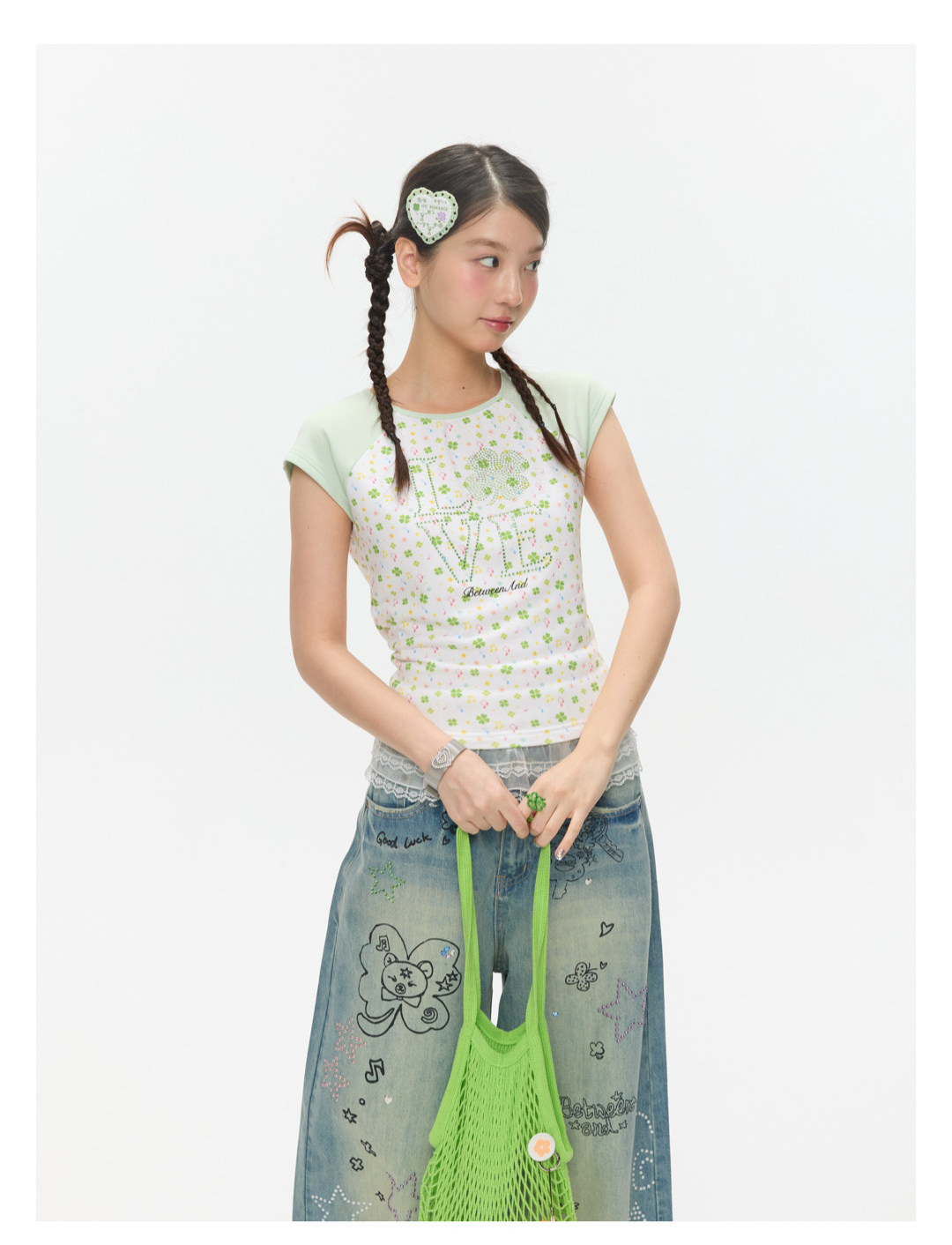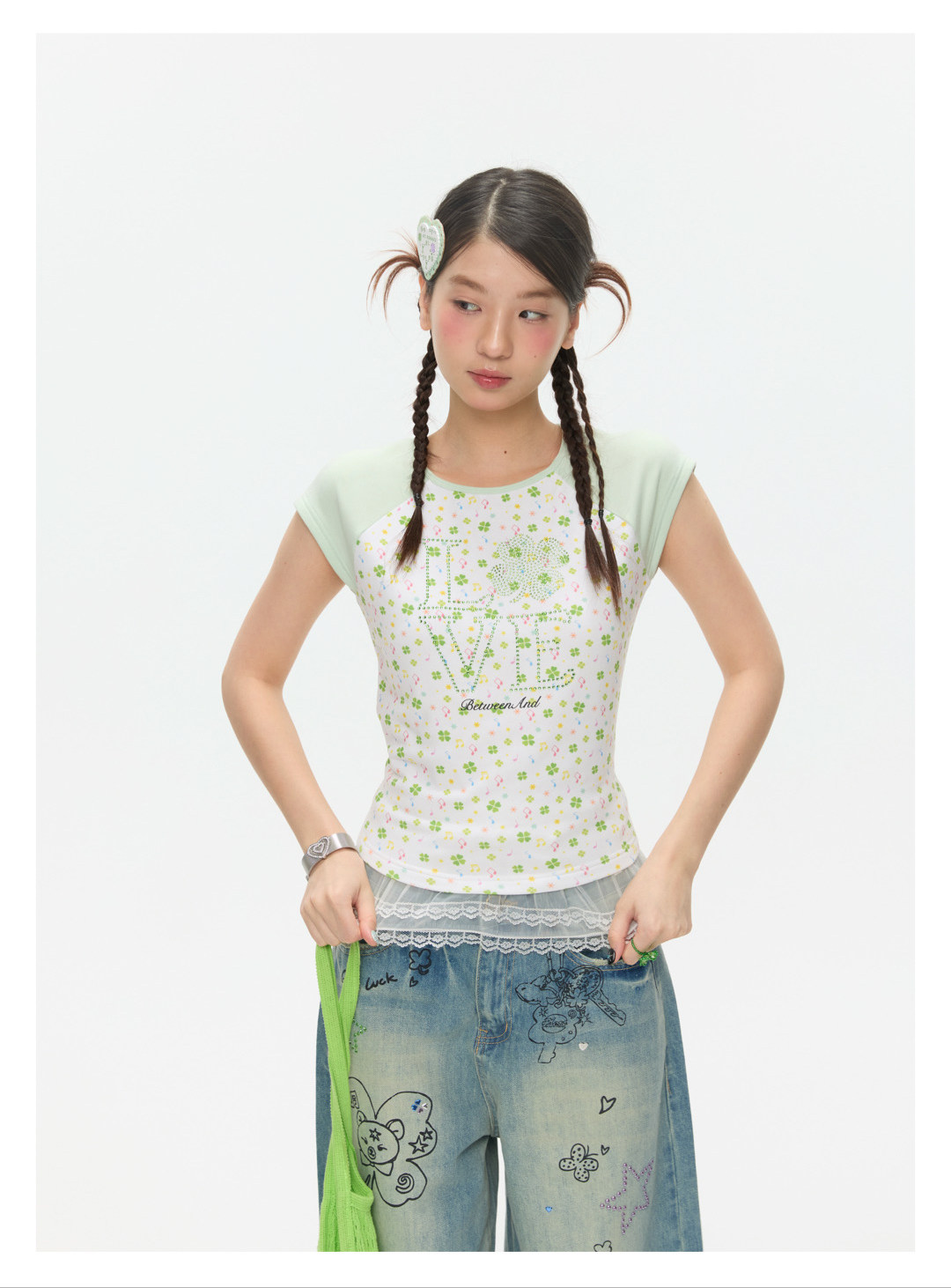 LOVE Four-leaf clover hot drill short t-shirt Lookbook