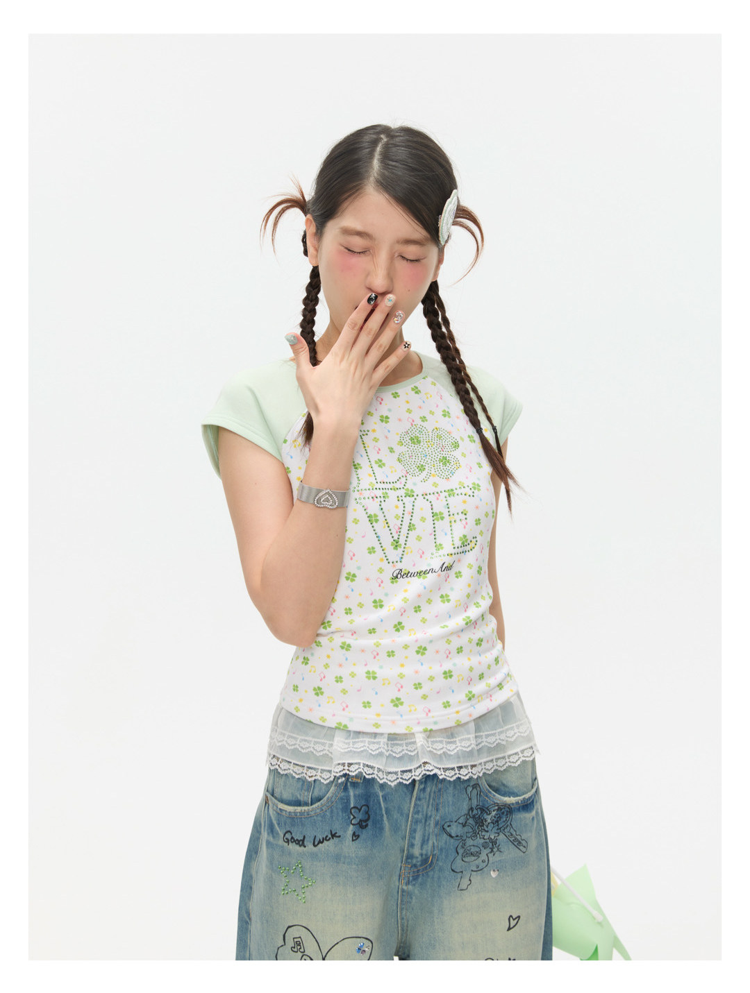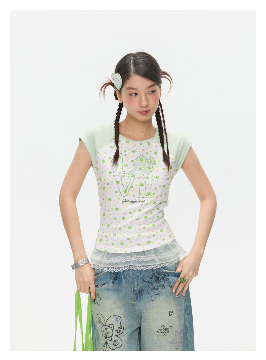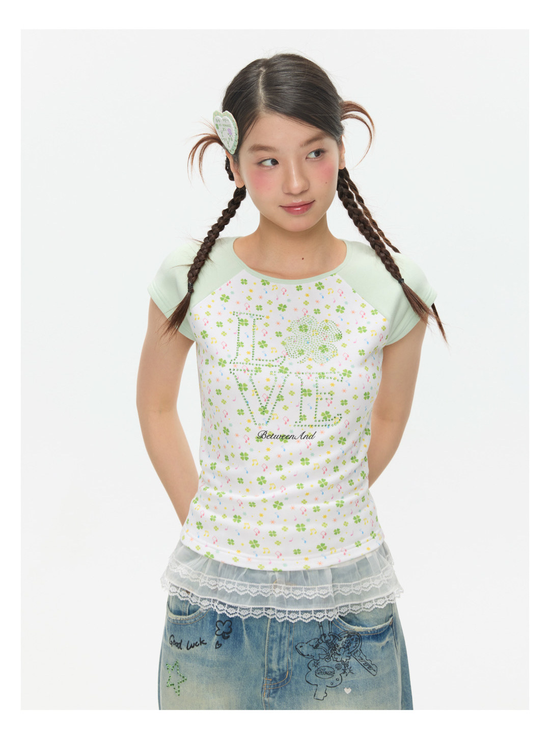 LOVE Four-leaf clover hot drill short t-shirt Lookbook