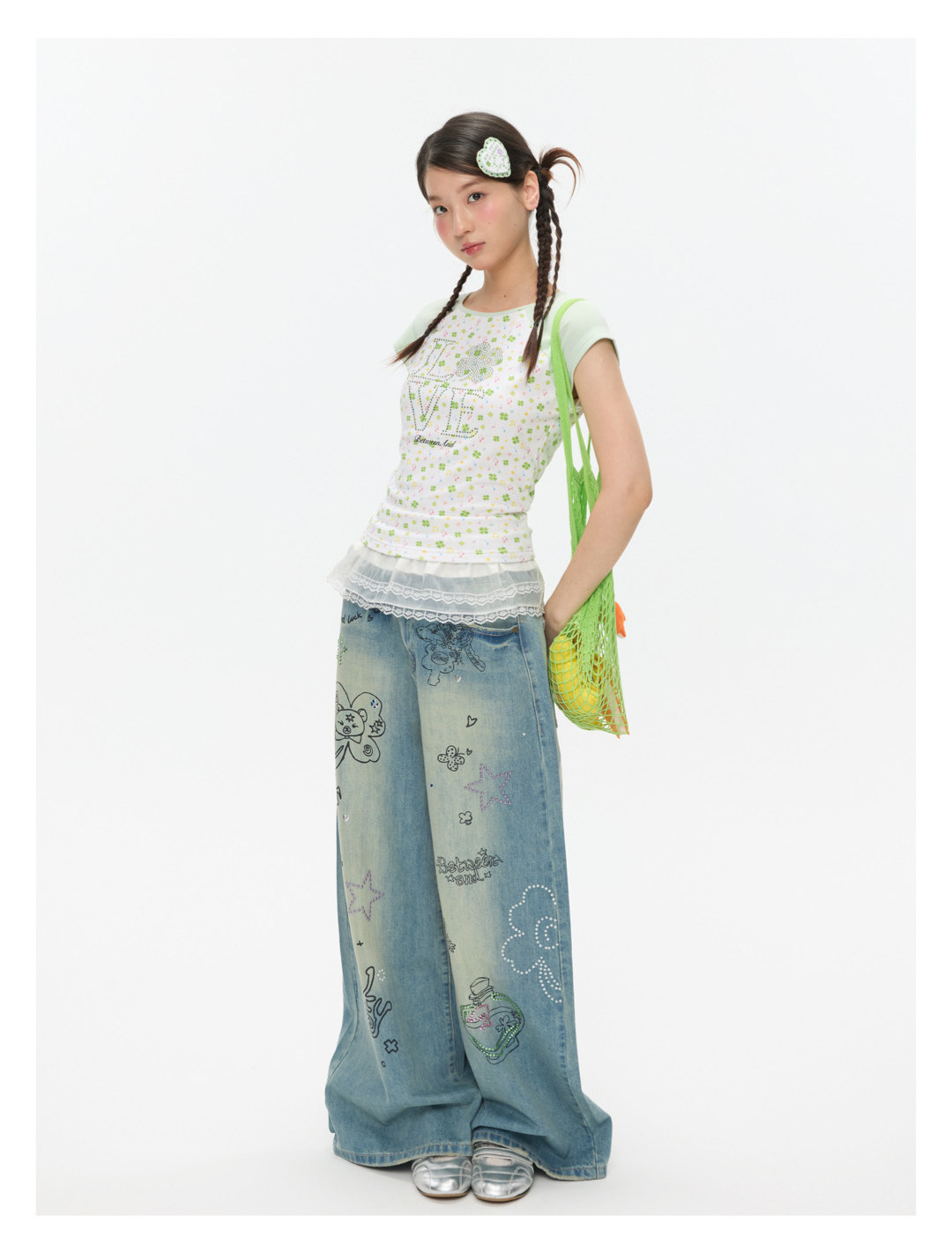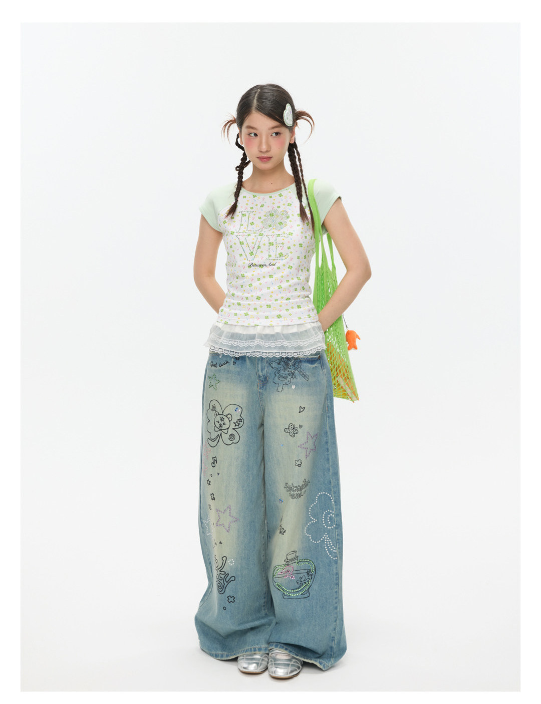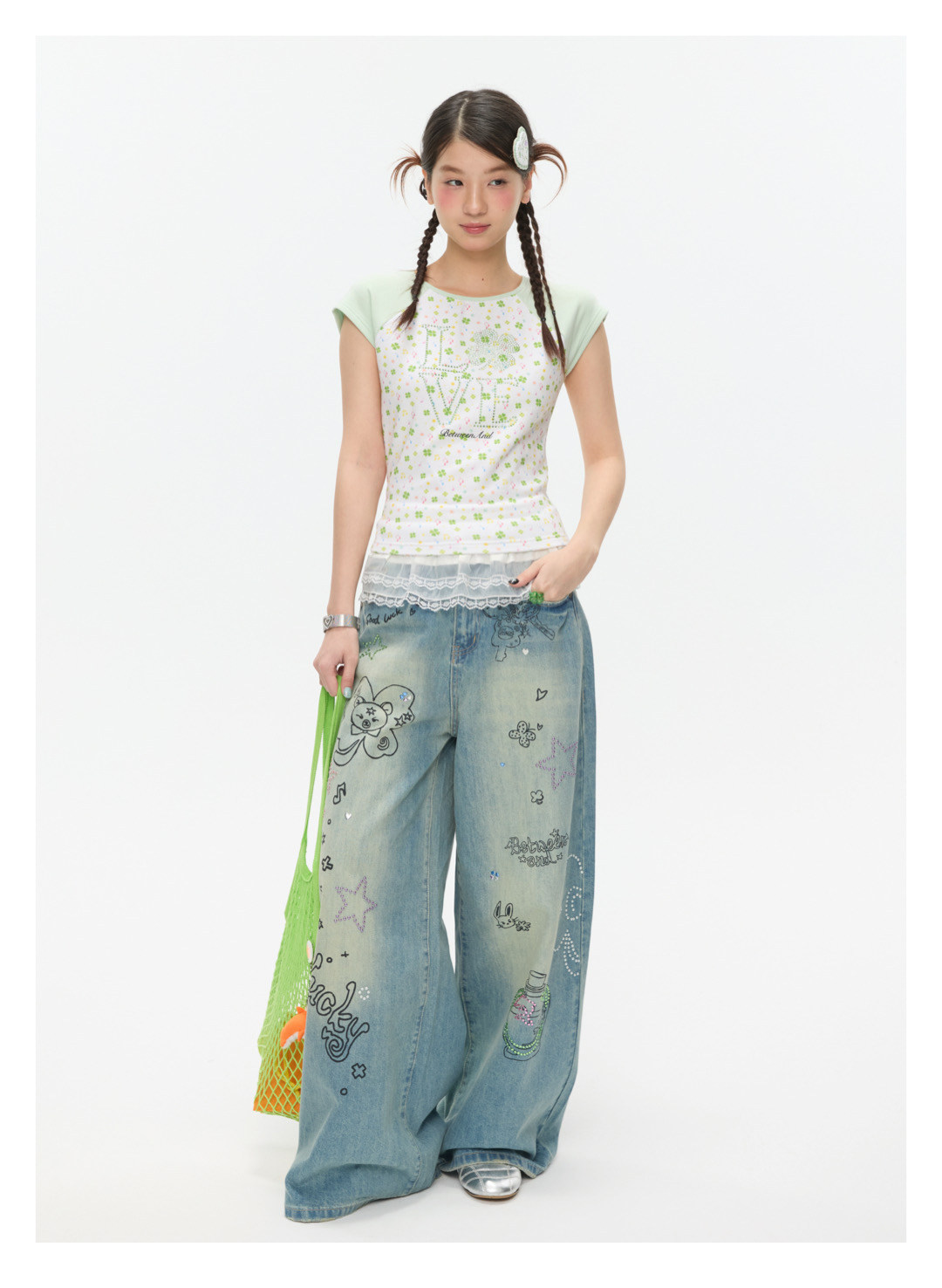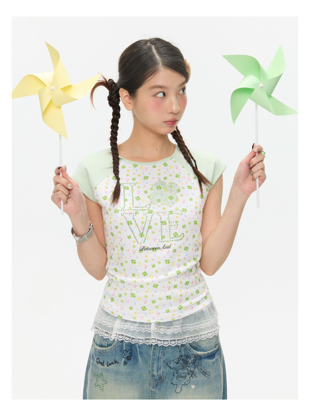 LOVE Four-leaf clover hot drill short t-shirt Lookbook